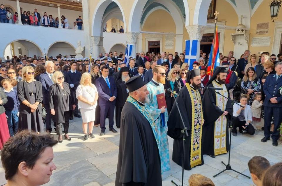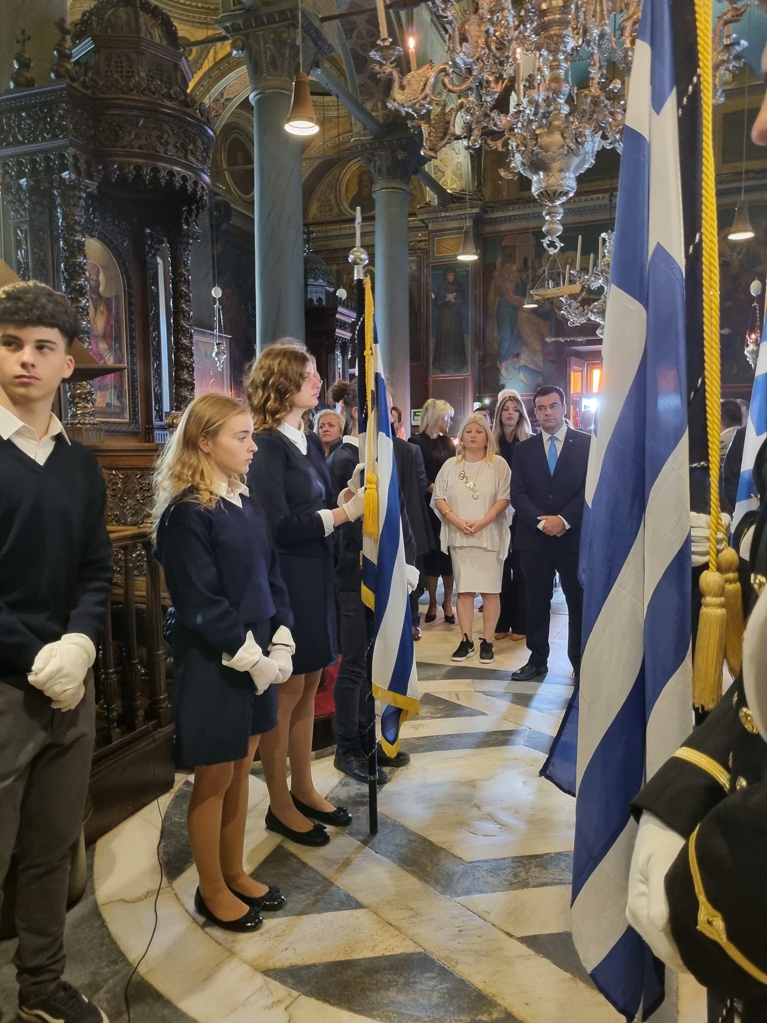 Εν συνεχεία ο Σεβασμιώτατος προέστη της Δοξολογίας επί τη Εθνική επετείω και ακολούθως παρέστη εις την επιμνημόσυνη δέηση εις το Ηρώον ως και εις τας εορτίους εκδηλώσεις της ημέρας.