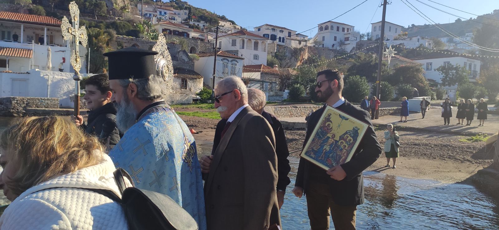 Mε έναν υπέροχο καιρό γιορτάστηκαν το πρωί στο Καμίνι της Ύδρας στην εκκλησία του Τιμίου Προδρόμου τα Θεοφάνεια.