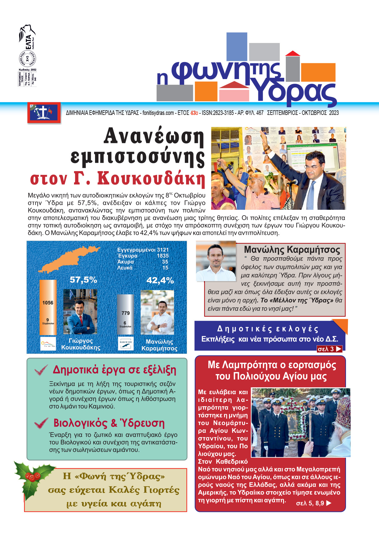Κυκλοφόρησε το τεύχος (Αρ. Φύλ. 467) της "Φωνής της Ύδρας".