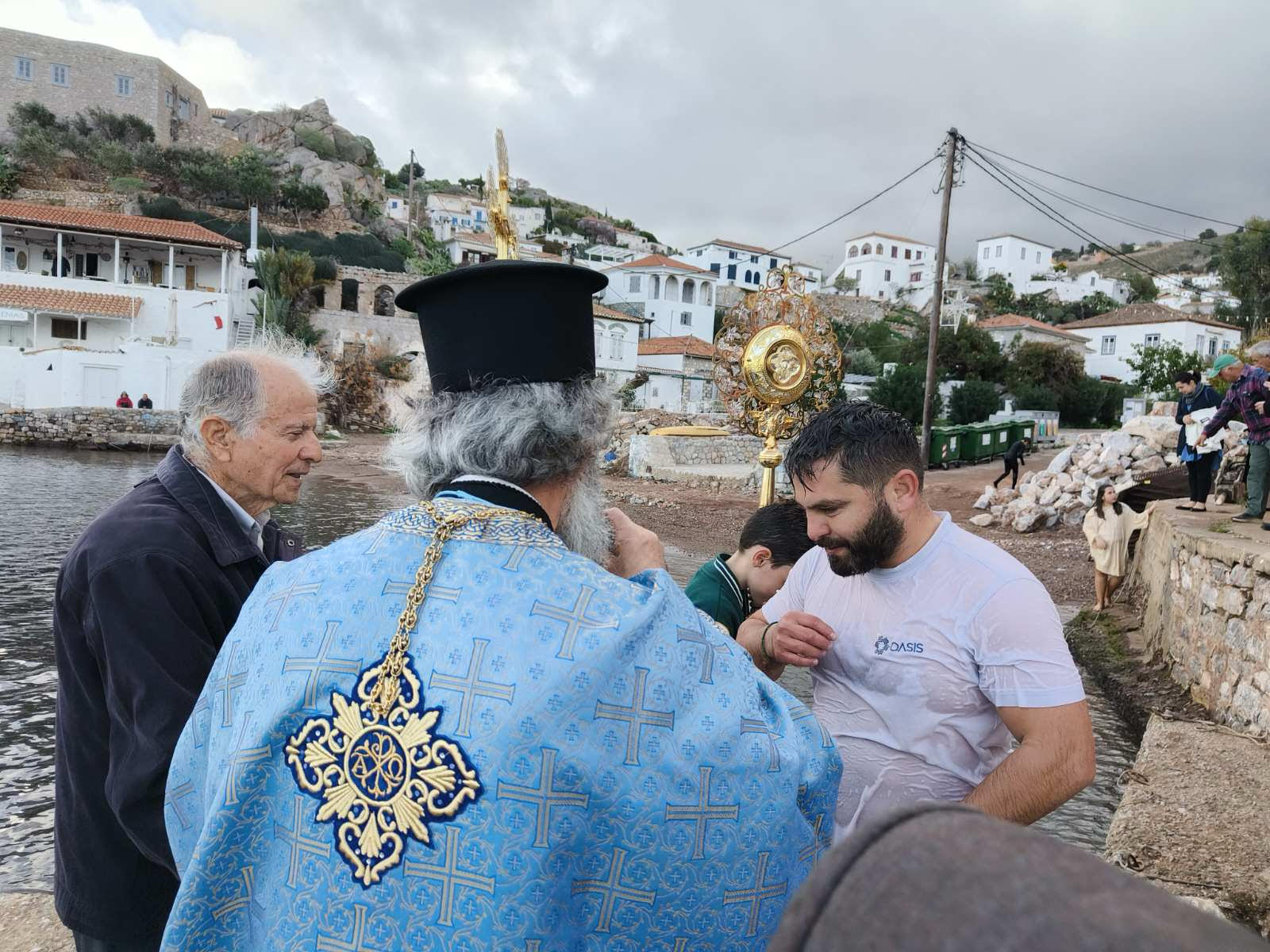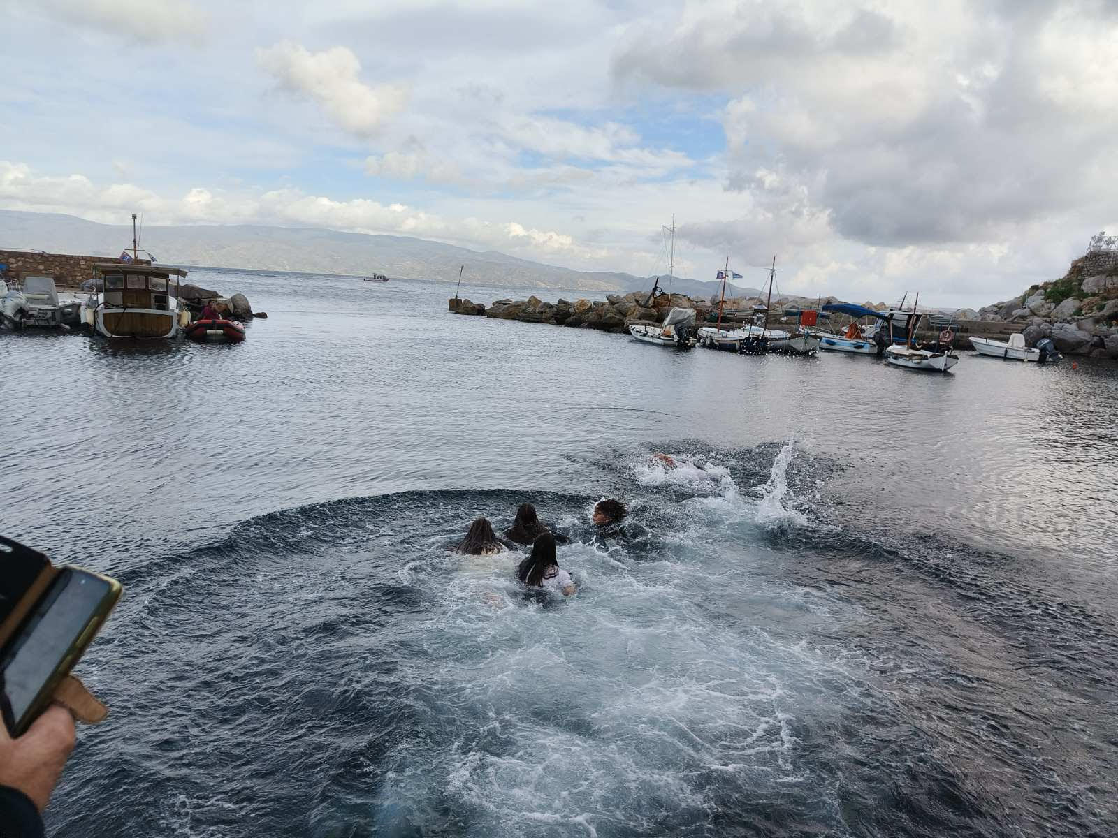Πλήθος κόσμου παραβρέθηκε για να παρακολουθήσει την κατάδυση του τιμίου σταυρού από τον εφημέριο της ενορίας, π. Ευάγγελο Γκιάκο.