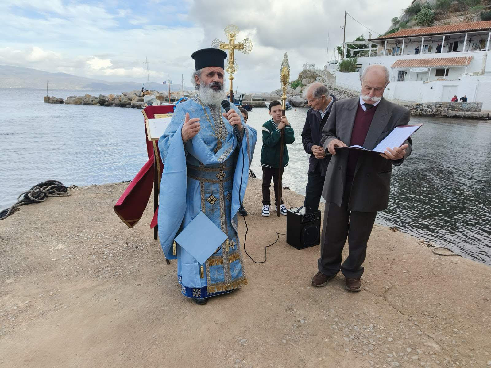 Πραγματοποιήθηκε ο αγιασμός των υδάτων στο γραφικό λιμάνι, το οποίο είναι δημοφιλές για το έθιμο του Επιταφίου που "βουτάει" στη θάλασσα για να έχουν καλά ταξίδια οι ναυτικοί.