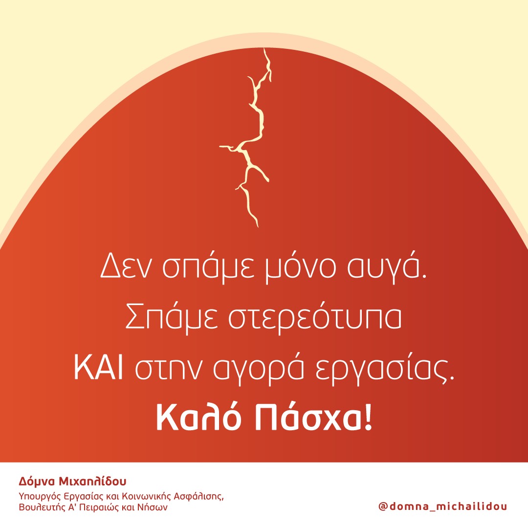 Η ευχετήρια κάρτα της Υπουργού Εργασίας και Κοινωνικής Ασφάλισης, Βουλευτή της Α' Πειραιά και Νήσων, Δόμνας Μιχαηλίδου.