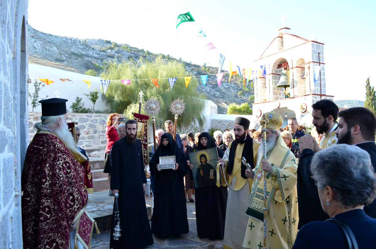 Γιόρτασε και φέτος το Μοναστήρι της Αγίας Ματρώνας τη Δευτέρα 20 Οκτωβρίου χοροστατούντος του Σεβασμιότατου Μητροπολίτη μας κ.κ. Εφραίμ και του ιερού κλήρου. Η Γερόντισσα Νεκταρία όπως πάντα φιλόξενη καλοδέχτηκε στην Ιερά Μονή περίπου 60 με 70 άτομα. Μαζί με τους προσκυνητές στη γιορτή παρέστη και ο Δήμαρχος Ύδρας Γιώργος Κουκουδάκης. Μετά τη λειτουργία δόθηκαν καφές, γλυκά, μαστίχα και μετά ακολούθησε πλούσια τραπεζαρία.