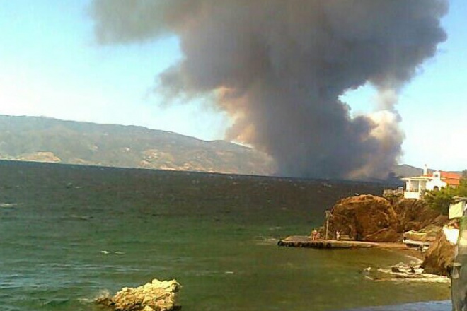 Άποψη της φωτιάς από Βλυχό. Η φωτό είναι της Κασσάνδρας Λεριού.