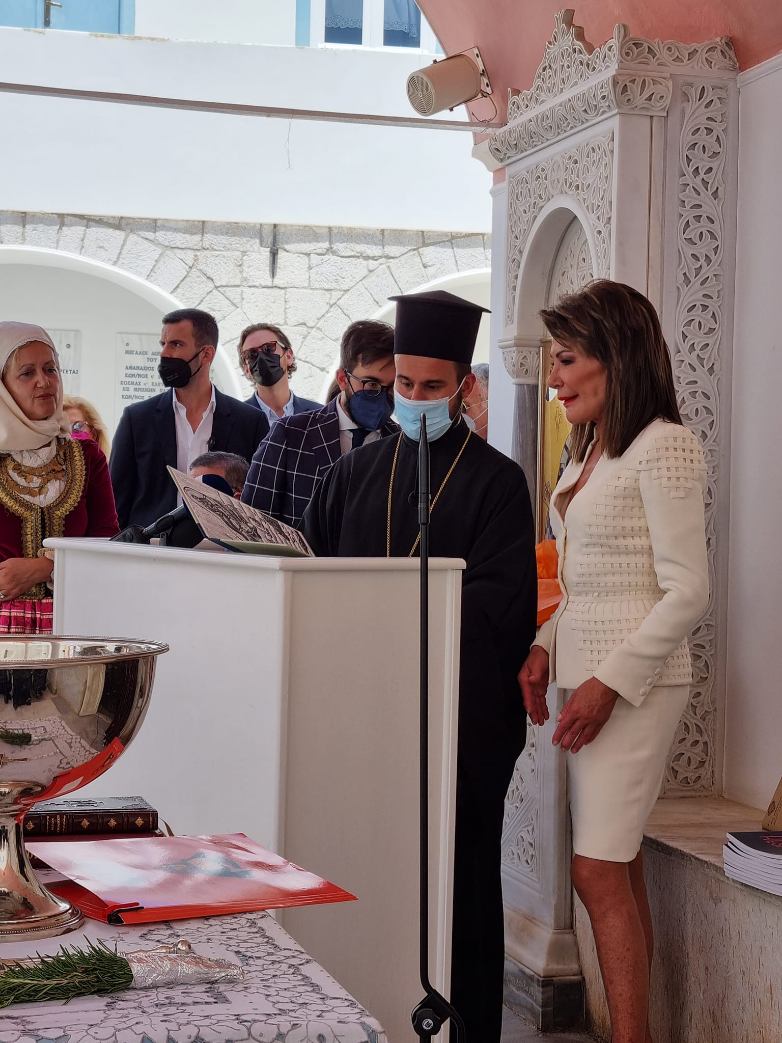 Παρέστη η Πρόεδρος του "ΕΛΛΑΔΑ 2020 - 2021" κυρία Γιάννα Δασκαλάκη Αγγελοπούλου χορηγός του έργου της νέας Βιβλιοθήκης του Ι.Μητροπολιτικού Ναού του Αγίου Νικολάου Σπετσών, και λοιποί επίσημοι αρχές της Νήσου και πλήθος Σπετσιωτών και παρεπιδημούντων.