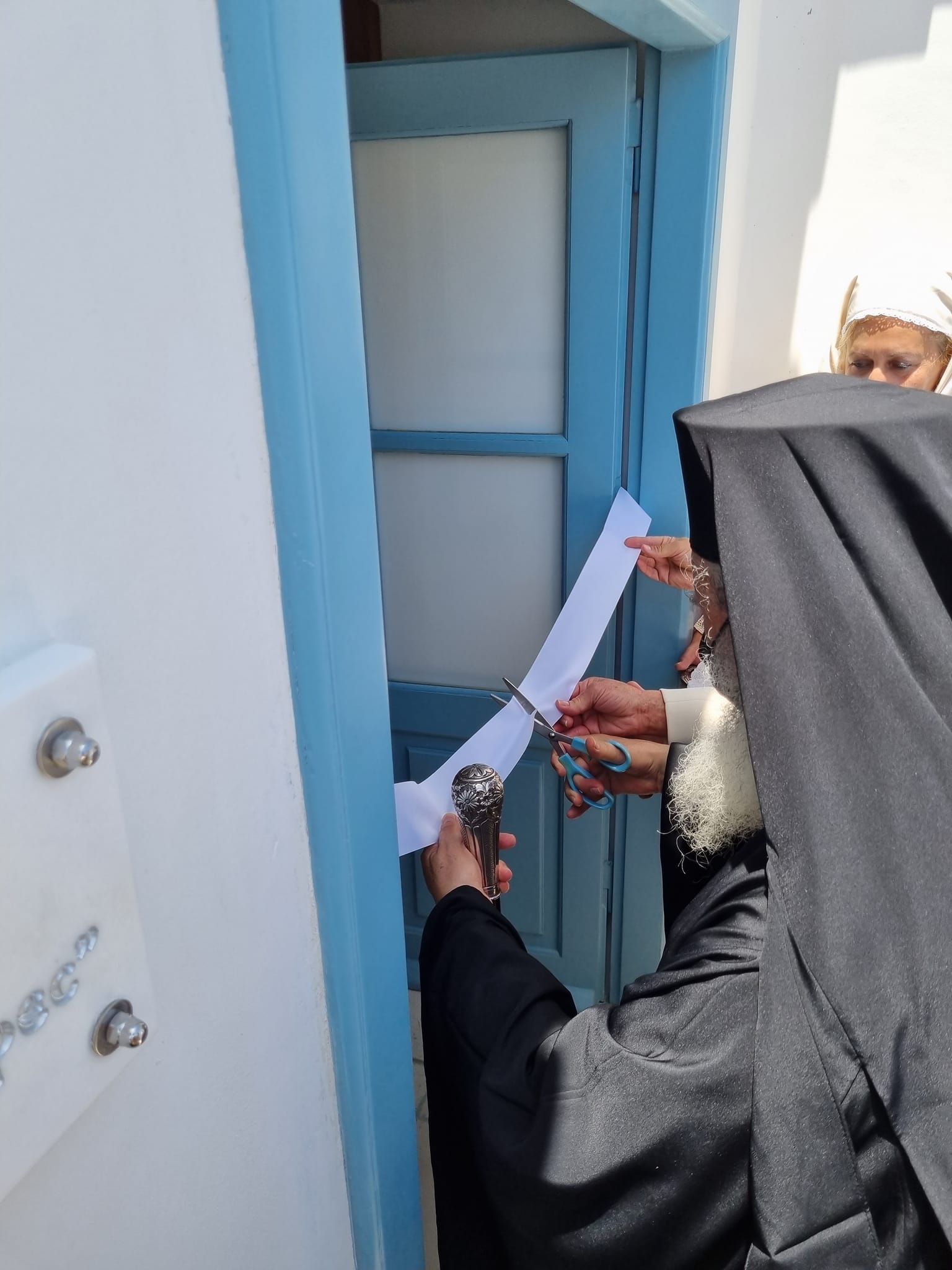 Τέλος ο Σεβασμιώτατος ομού μετά της κυρίας Προέδρου έκοψαν την κορδέλα των εγκαινίων και ξεναγήθηκαν από τον εκλεκτό Αρχιτέκτονα του έργου.κ.Ιωάννη Δέδε.