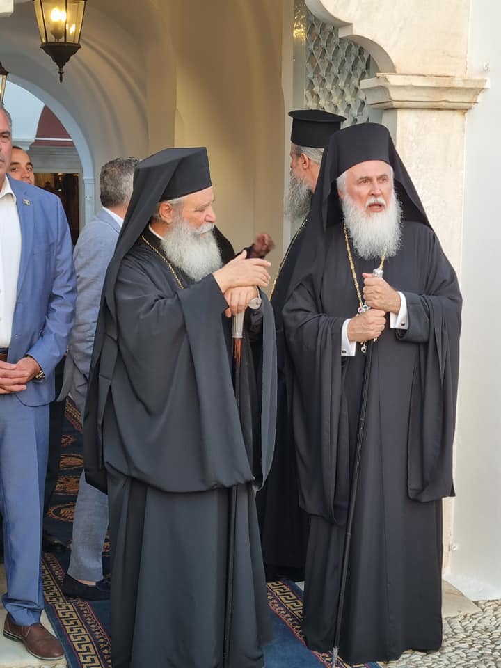 Τον Σεβασμιώτατο Αρχιεπίσκοπο υποδέχθηκε στα προπύλαια του Ι.Μητροπολιτικού Ναού ο Σεβασμιώτατος Ποιμενάρχης μας κ.ΕΦΡΑΙΜ ομού μετά του Σεβασμιωτάτου Μητροπολίτου Λήμνου και Αγίου Ευστρατίου κ.ΙΕΡΟΘΕΟΥ Γ, και των αρχών της Νήσου.