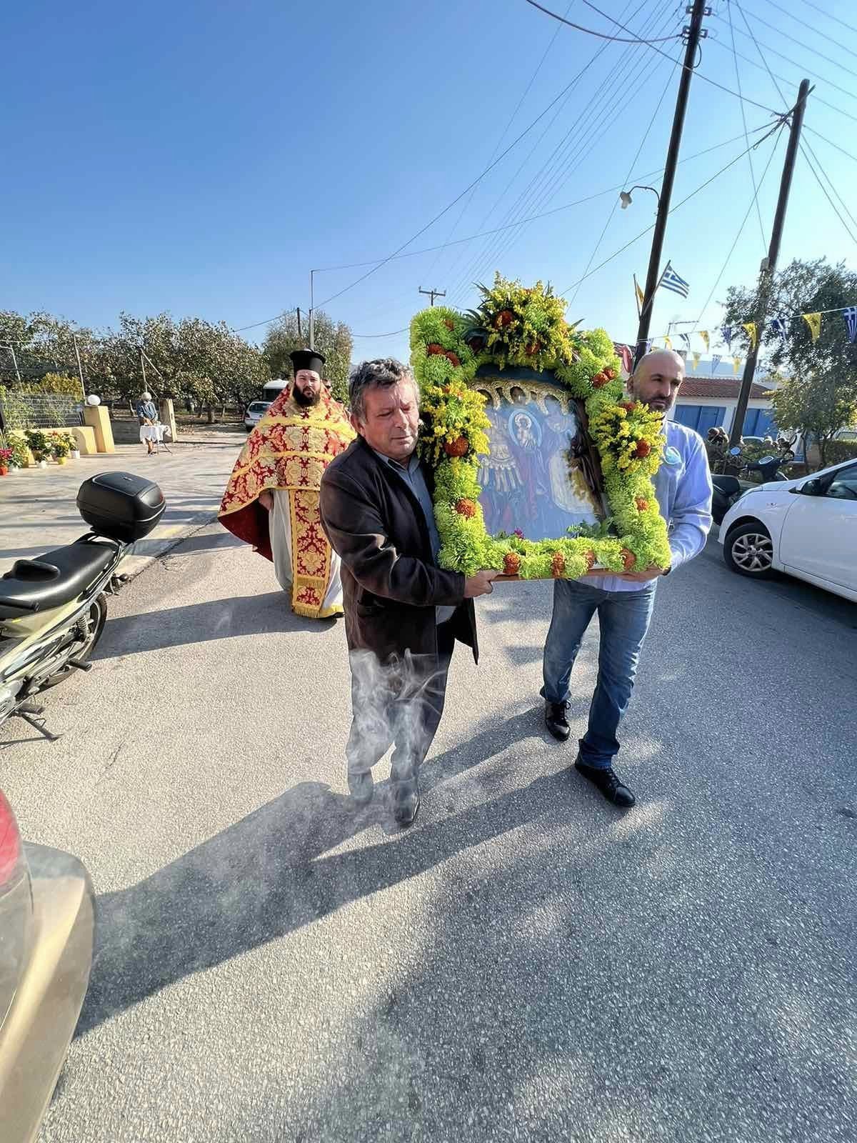 Ακολούθησε λιτάνευση της Ιεράς Εικόνος των Ταξιαρχών και εόρτιο κέρασμα.