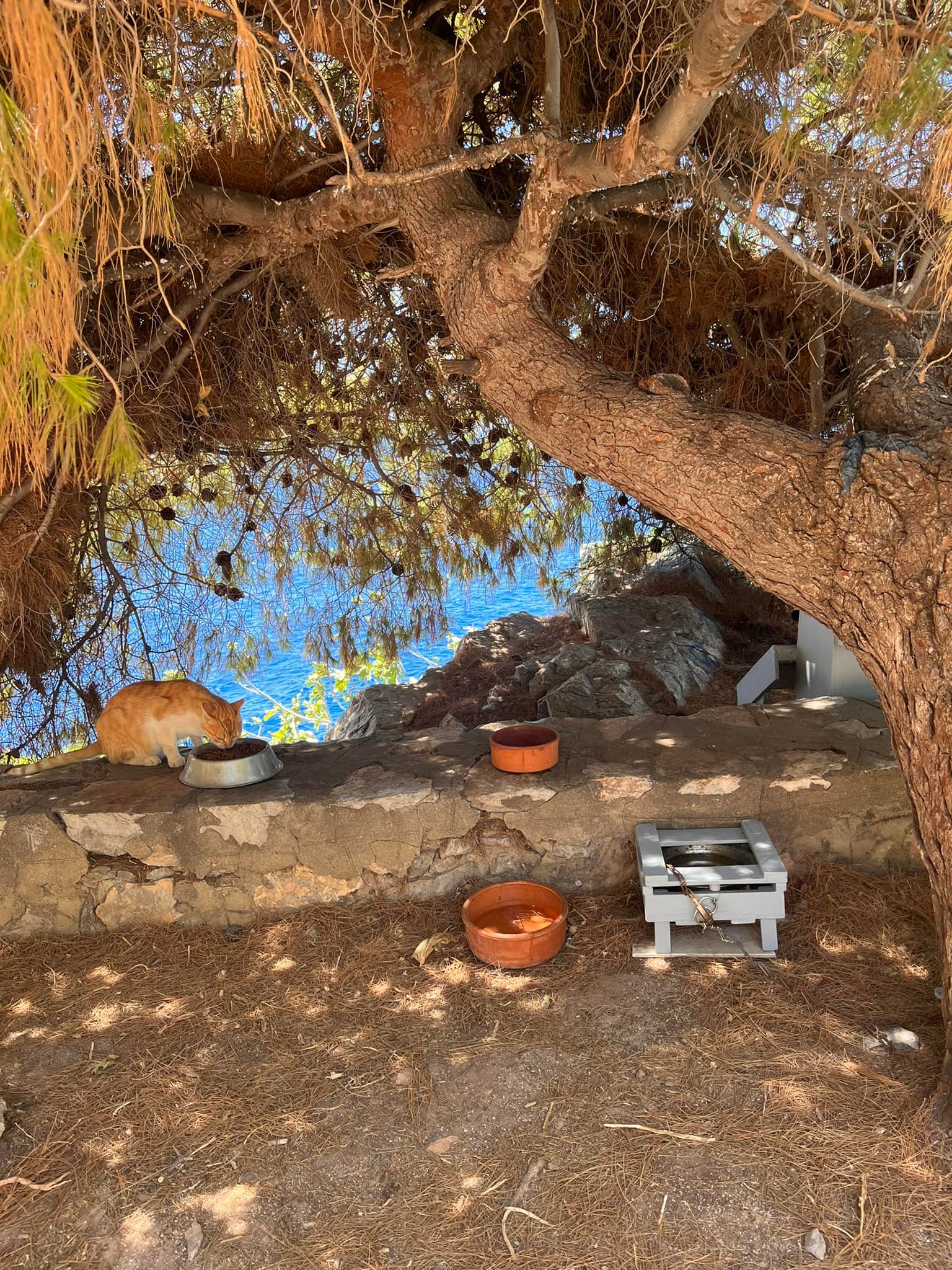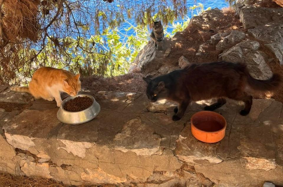 Όπως εδώ στην περιοχή του Αυλακιού που ευχαριστημένες γάτες σπεύδουν να φάνε και να δροσιστούν.