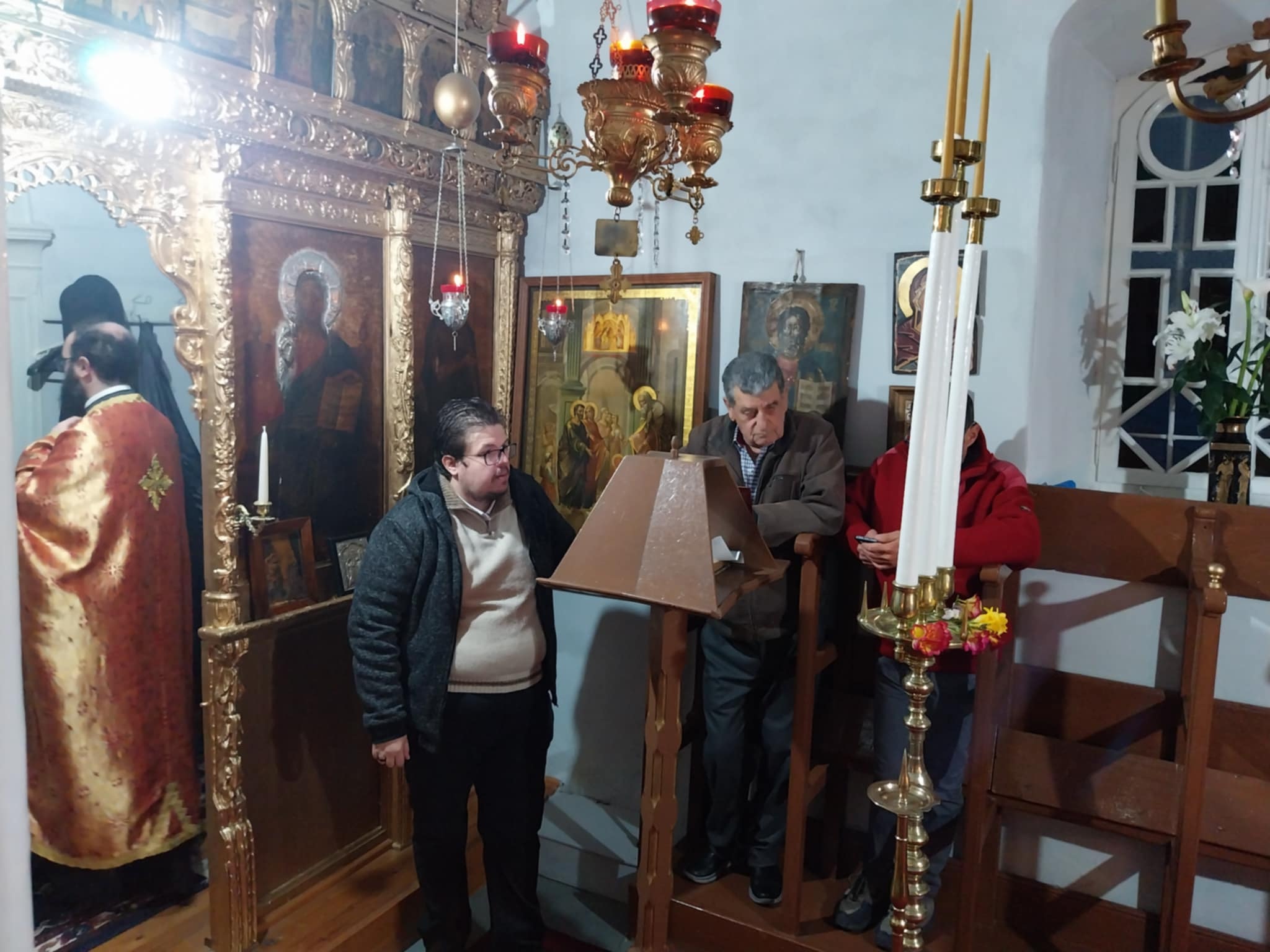 Ιεροψάλτες ήταν οι Λάζαρος Καρακατσάνης, Στέφανος Φραντζής και Μανώλης Καραμήτσος.