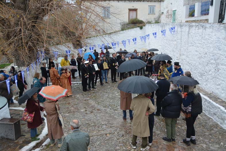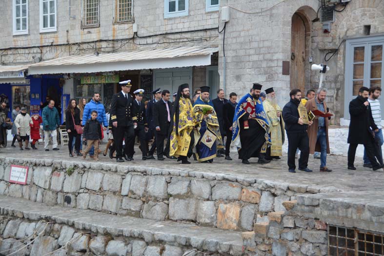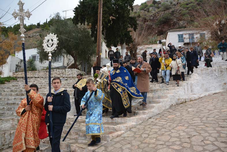 Mε λαμπρότητα και κατάνυξη γιορτάστηκαν και φέτος στην Ύδρα τα Θεοφάνεια. Ο καιρός ήταν συννεφιασμένος πλην όμως ευνοϊκός και πλήθος κόσμου συμμετείχε στη μεγάλη αυτή γιορτή. Το πρωί τελέστηκε η θεία λειτουργία του Ιερού Καθεδρικού Ναού Κοιμήσεως Θεοτόκου στην οποία προεξήρχε ο Γενικός Αρχιερατικός Επίτροπος Πρωτ. Ακίνδυνος Δαρδανός. Ο Αρχιμανδρίτης Θεόδωρος Θεοδοσίου και ο ιερός κλήρος συλλειτούργησαν. Μεταξύ των παρόντων οι αρχές του τόπου, ο Δήμαρχος Ύδρας Γιώργος Κουκουδάκης, ο Αντιδήμαρχος Γιάννης Μπελεγρής, ο Πρόεδρος της ΚΕΔΥ Μανώλης Καραμήτσος, ο Δημοτικός Σύμβουλος Γιάννης Κόκκος, ο ανεξάρτητος Δημ. Σύμβουλος Τάσος Σωτηρόπουλος, ο Λιμενάρχης Γιώργος Μανδαλάκης, ο Υπολιμενάρχης Βασίλης Βαζαίος, ο Διοικητής της ΑΕΝ Ευάγγελος Δανόπουλος, ο Υποδιοικητής του Αστυνομικού Τμήματος Δ. Γιαννακάκος κ.α. Στη συνέχεια πολλοί συμπολίτες μας, ακολούθησαν τη λιτανευτική πομπή προς τα Καλά Πηγάδια για τον παραδοσιακό αγιασμό των υδάτων. Το ψιλόβροχο δεν ανησύχησε κανέναν και όλοι μαζί γιόρτασαν και εκεί τα Θεοφάνεια. Όχι μόνο όσοι ανηφόρισαν στην περιοχή αλλά και οι γύρω γείτονες.
