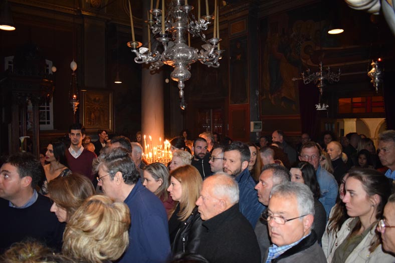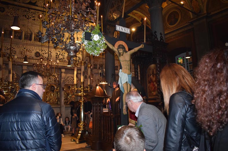Πλήθος πιστών συνέρρευσε στη Μητρόπολη για να προσκυνήσει τον Εσταυρωμένο.