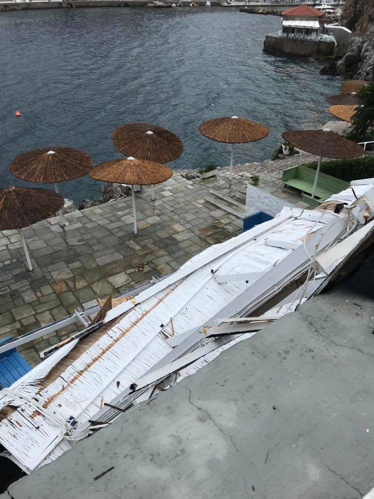 Πτώση της στέγης και ζημιές στο καφέ-μπαρ "Σπηλιά" προκάλεσε ο "Ιανός" στην Ύδρα σήμερα το πρωί.