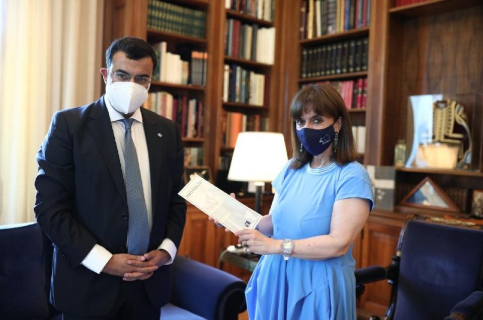 Tην Πρόεδρο της Δημοκρατίας Κατερίνα Σακελλαροπούλου επισκέφτηκε την Πέμπτη 17 Ιουνίου ο Δήμαρχος Ύδρας Γιώργος Κουκουδάκης για να της επιδώσει την επίσημη πρόσκληση για τα "Μιαούλεια 2021".