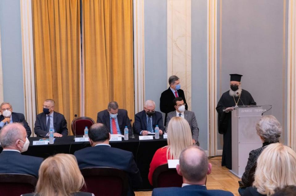 Ο Σεβασμιώτατος Ποιμενάρχης ημών κ.κ. ΕΦΡΑΙΜ, συνοδευόμενος υπό του Πανοσ. Πρωτοσυγκέλλου Αρχιμ. π. Νεκταρίου Δαρδανού, παρέστη την Δευτέρα 29η Νοεμβρίου 2021, στην εκδήλωση για την παρουσίαση του νέου βιβλίου του Δημάρχου Ύδρας κ. Γ. Κουκουδάκη, στο Δημοτικό Θέατρο Πειραιώς, και χαιρέτησε με πατρικούς λόγους.