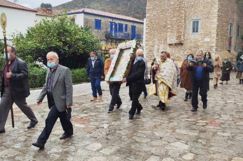 Παρότι οι καιρικές συνθήκες ήταν δύσκολες έγινε και η καθιερωμένη μικρά λιτάνευση της Ι. εικόνος των παλαιών συνδρομητών, που ήδη ευρίσκονται εις την αιωνιότητα.