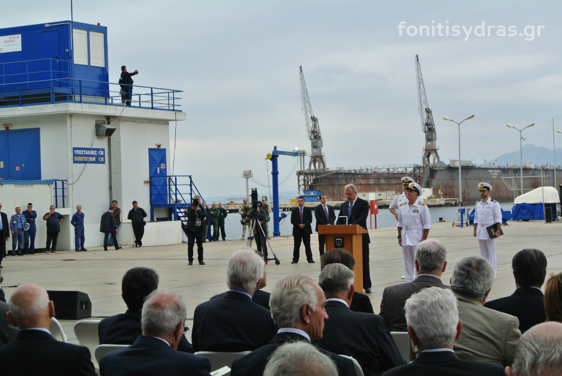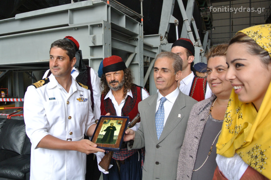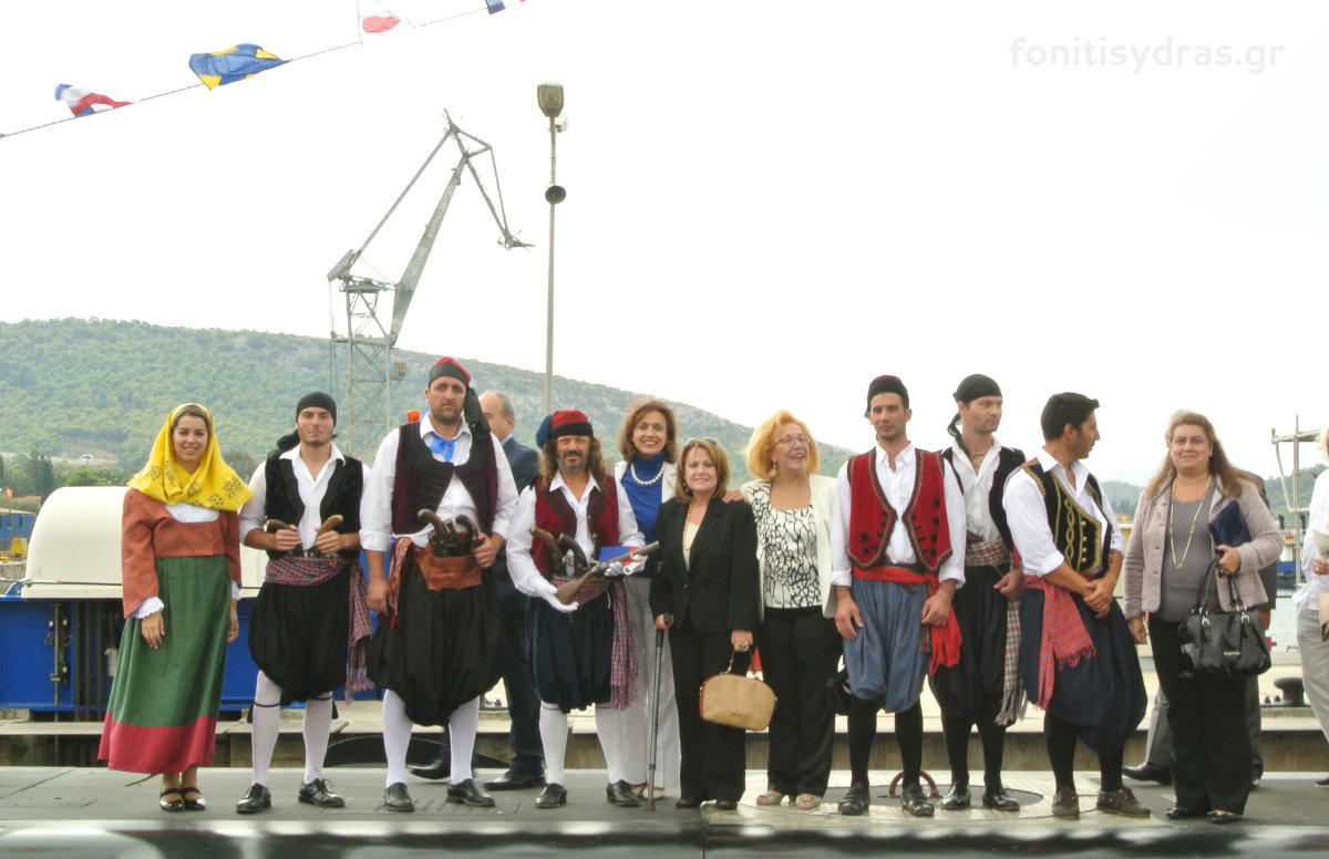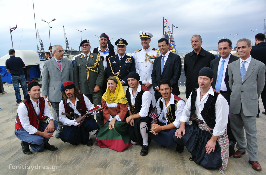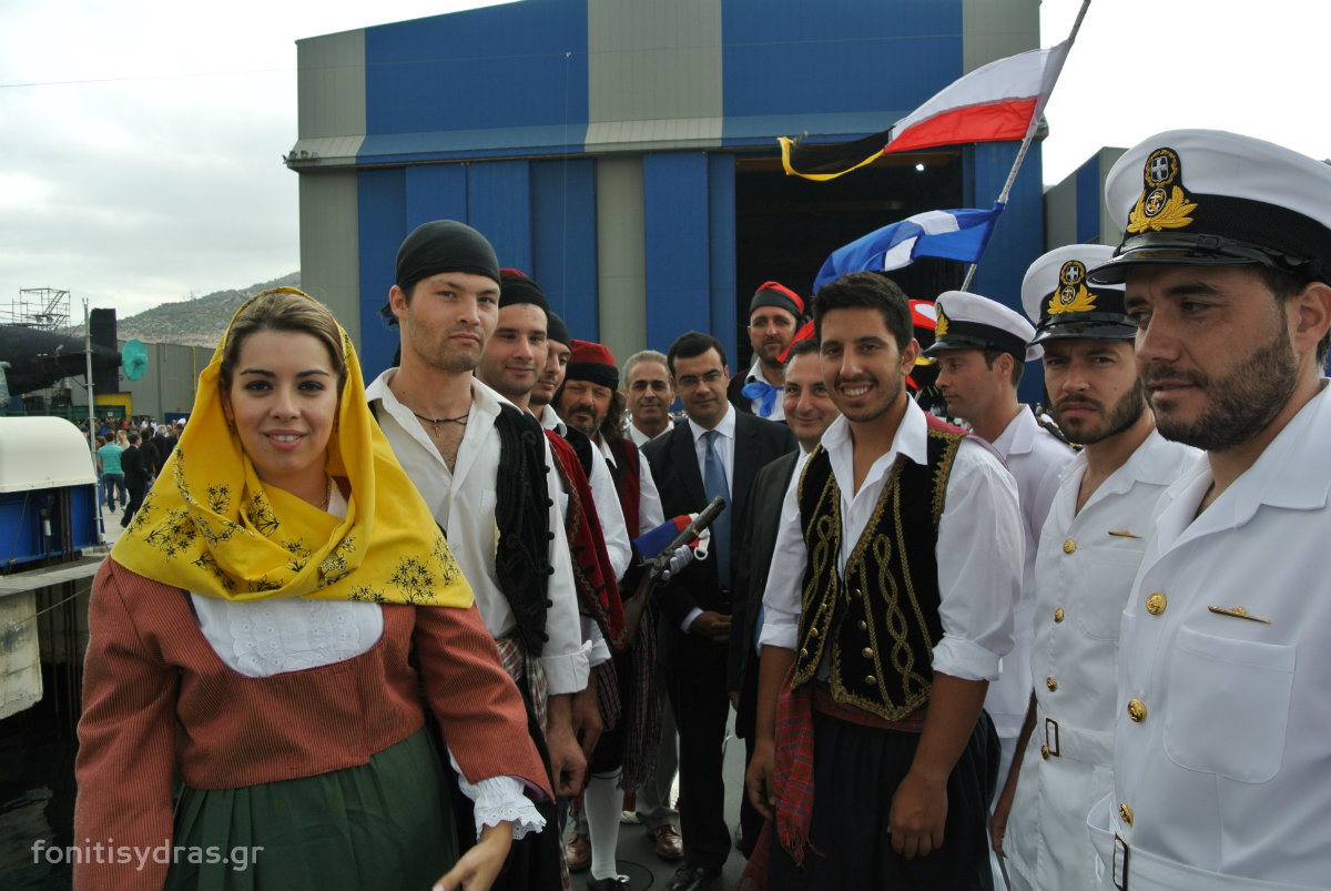 Στην τελετή το 'παρών" έδωσε επίσης Υδραϊκή αντιπροσωπεία με τον Δήμαρχο Ύδρας Γιώργο Κουκουδάκη, τον Αντιδήμαρχο Γιάννη Μπελεγρή, τον Δημοτικό Σύμβουλο Παναγιώτη Ράππα, τον Πρόεδρο της Αδελφότητας Υδραίων Αθηνών Γιάννη Σαχίνη και την Γραμματέα Αναστασία Λάσκαρη, την Πρόεδρο του Υδραϊκού Συνδέσμου Πειραιά Άννα Βάρκα και την Αντιπρόεδρο Μάντη Κουντουριώτη, την Διευθύντρια του ΙΑΜΥ Ντίνα Αδαμοπούλου και φυσικά τους Υδραίους μπουρλοτιέρηδες που έδωσαν ιδιαίτερη και ηρωική αίσθηση. Στον προλιμένα των εγκαταστάσεων του Ναυπηγείου ήταν αγκυροβολημένη η φρεγάτα ΥΔΡΑ σε ένδειξη τιμής και αναγνώρισης της καταγωγής του Ανδρέα Πιπίνου.  Αξίζει να σημειωθεί ότι μαζί της η Υδραϊκή αντιπροσωπεία είχε φέρει το "τρομπόνι" του Ανδρέα Πιπίνου το οποίο φυλάσσεται στο Ιστορικό Αρχείο-Μουσείο Ύδρας, το οποίο προκάλεσε συγκίνηση και θαυμασμό. Συντονιστής της Υδραϊκής Αντιπροσωπείας ήταν ο Γιώργος Μουνδρέας ενώ την εκδήλωση της καθέλκυσης κάλυψε η 'Φωνή της Ύδρας".