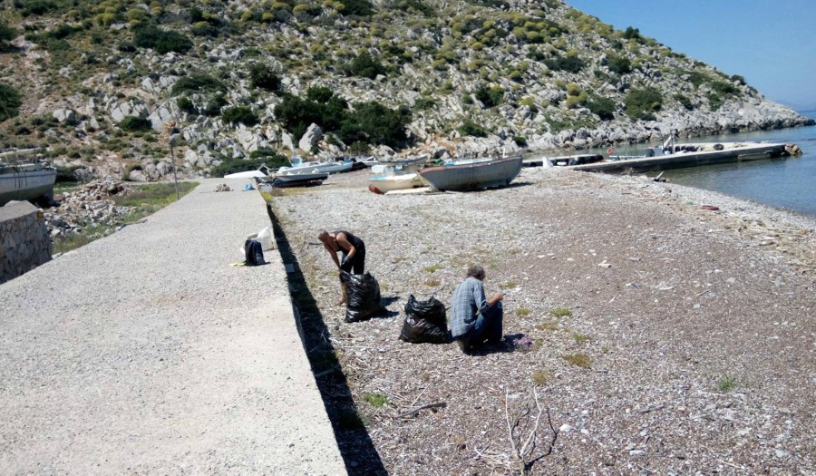 Τα σκουπίδια συγκεντρώθηκαν σε συγκεκριμένο σημείο ώστε να τα παραλάβουν οι υπηρεσίες καθαριότητας του Δήμου Ύδρας.