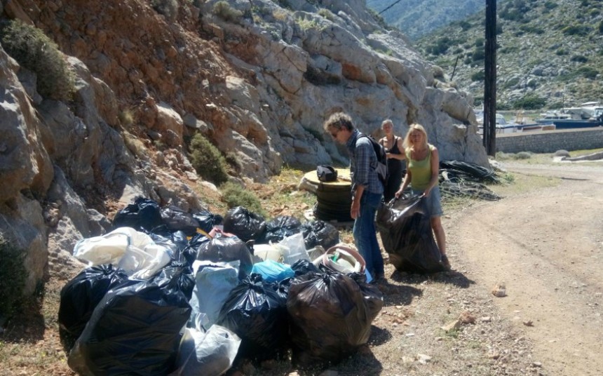 23 μαύρες μεγάλες σακούλες αλλά και μια σειρά μικρότερων ήταν ο απολογισμός του καθαρισμού της παραλίας, μετά από 3 ώρες επίπονης δουλειάς.