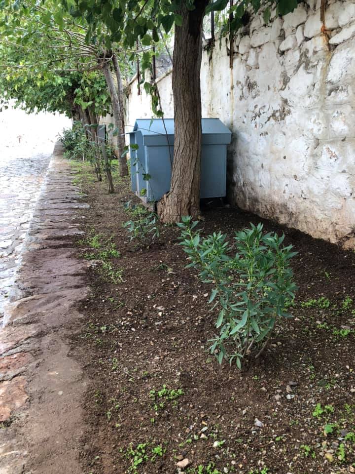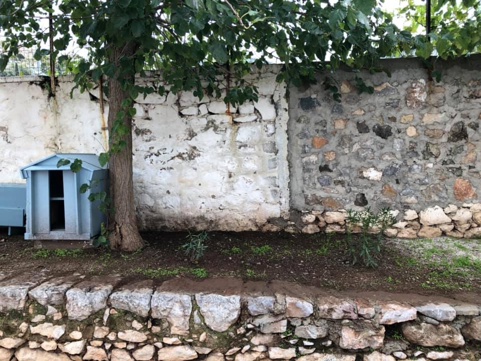 Ο χώρος καθαρίστηκε από τα αγριόχορτα και τα στερεά απόβλητα, και οι εθελοντές της Κιβωτού έσκαψαν το χώμα, πότισαν τα νέα φυτά και επισκεύασαν το παλιό σπιτάκι του σκύλου, το οποίο είχε πεταχτεί στην περιοχή από κάποιον.