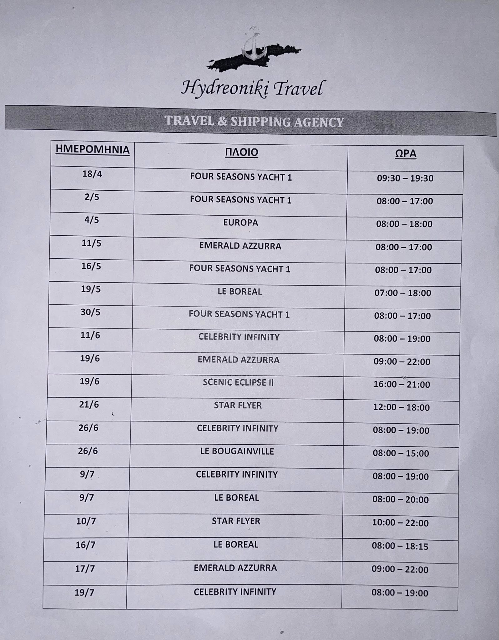 Ο Εμπορικός, Επαγγελματικός και Βιοτεχνικός Σύλλογος Ύδρας ενημέρωσε, μέσω ανάρτησής του, για το πρόγραμμα αφίξεων κρουαζιερόπλοιων για το 2026 στο λιμάνι του νησιού μας, από το γραφείο HYDRAIONIKI TRAVEL, με στόχο την έγκαιρη ενημέρωση των επαγγελματιών.