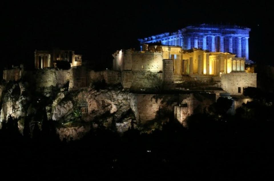 Ο Ιερός Βράχος της Ακρόπολης φωταγωγείται με το μπλε χρώμα, επίσημο χρώμα της UNICEF, σήμερα, 20 Νοεμβρίου, στην 30ή επέτειο από την υπογραφή της Σύμβασης των Ηνωμένων Εθνών για τα δικαιώματα του παιδιού.
