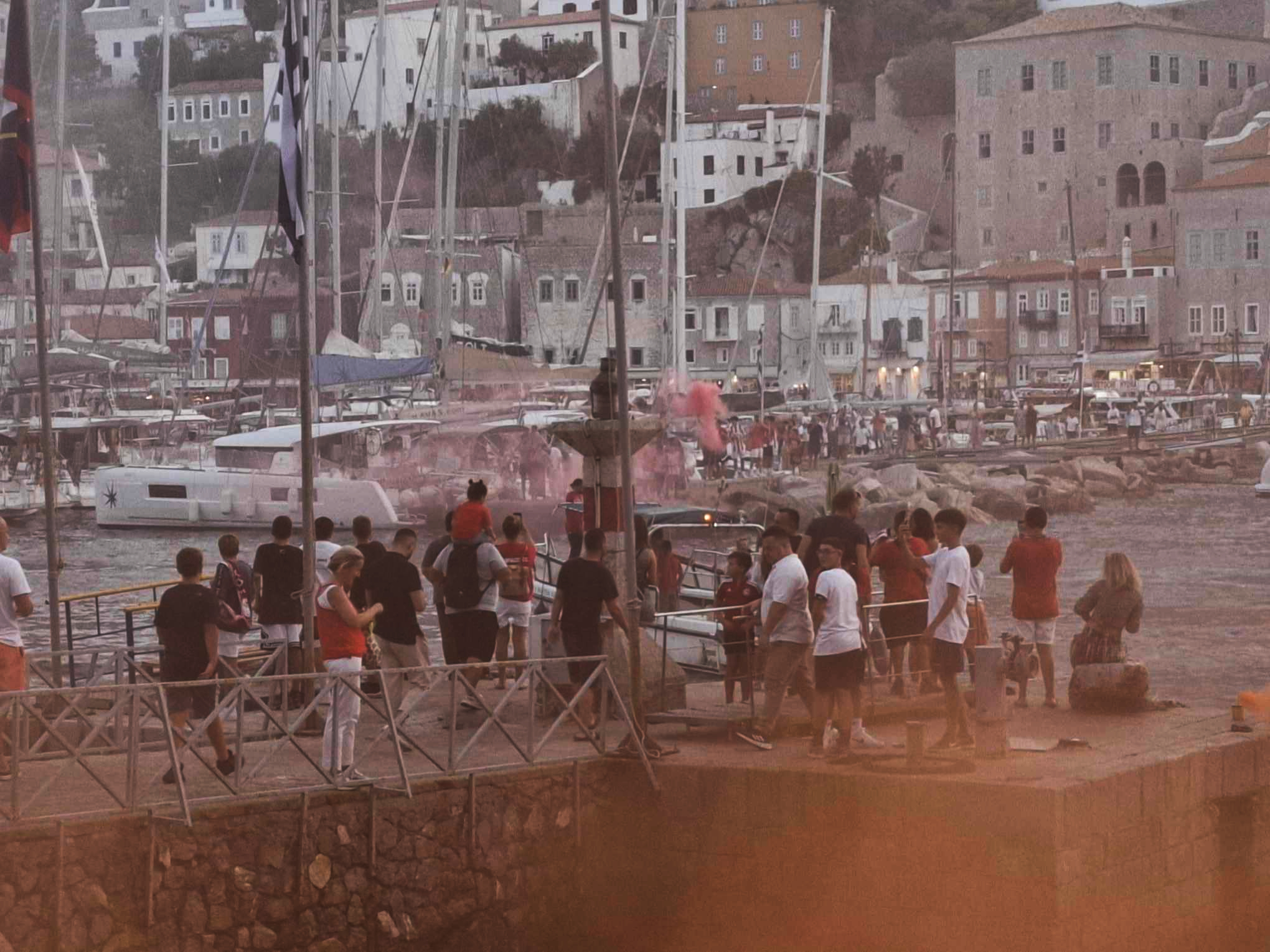 Το ερυθρόλευκο φως αγκάλιασε ολόκληρη την Ύδρα, αντανακλώντας την υπερηφάνεια και τη χαρά όχι μόνο των φίλων του Ολυμπιακού, αλλά και όλων όσων είδαν μια ελληνική ομάδα να διακρίνεται στην Ευρώπη.