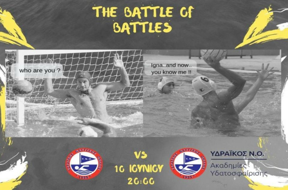Τη Δευτέρα 10 Ιουνίου στις 8 το βράδυ, θα γίνει η... «μητέρα των μαχών», που αρχικά είχε προγραμματιστεί για την Παρασκευή. Η οικογένεια του Υδραϊκού, μεγάλοι και μικροί πολίστες, θα δώσουν τον πολυαναμενόμενο αγώνα μικτών ομάδων Ανδρών και Παίδων στο ALMA CLUB, όπου σίγουρα θα... πέσουν κορμιά.