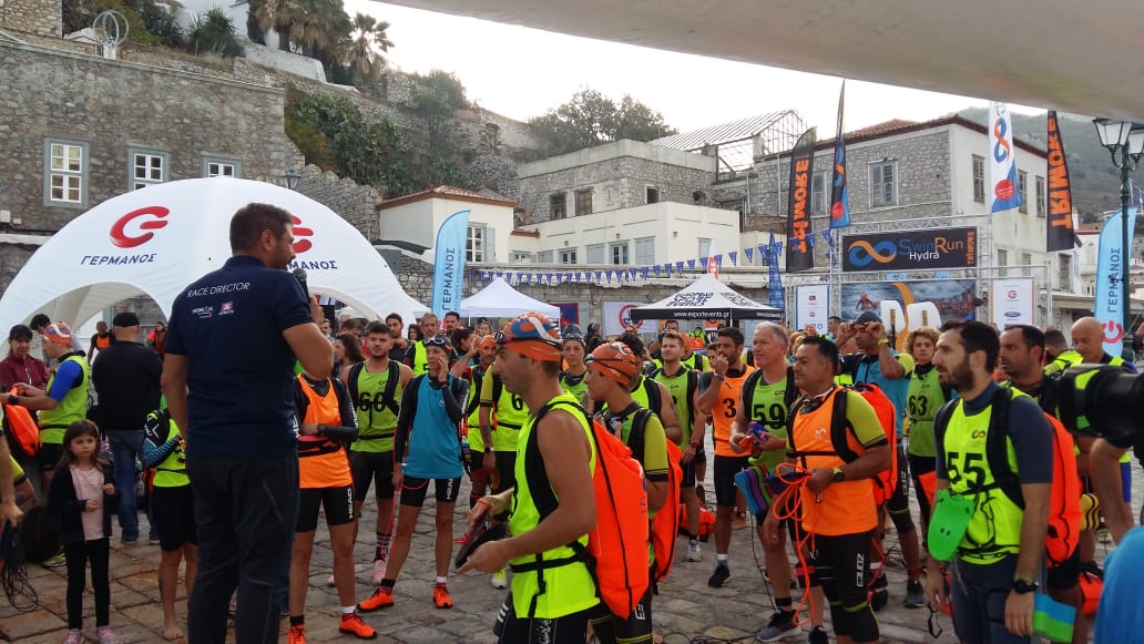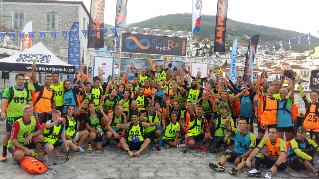 Για δεύτερη φορά πραγματοποιήθηκαν στην Ύδρα οι αγώνες Trimore SwimRun Hydra με ζευγάρια αθλητών και εναλλαγές σε αγώνες.
