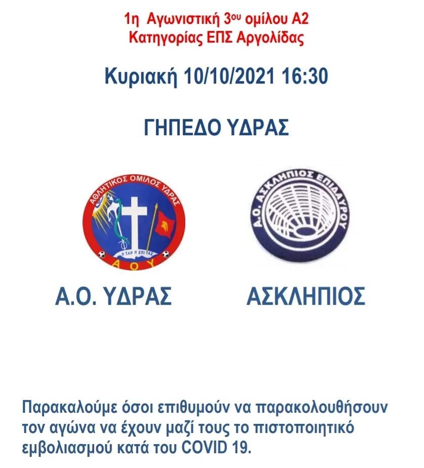 Ο Α.Ο.Υ. θα αγωνιστεί με τον Ασκληπιό Επιδαύρου.