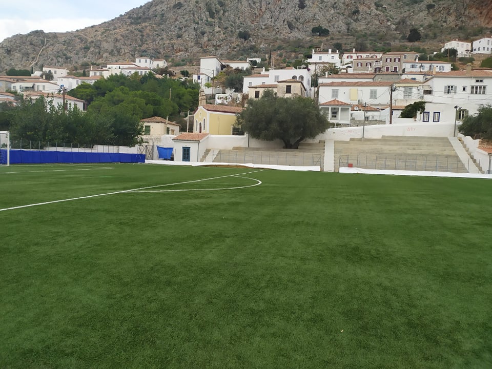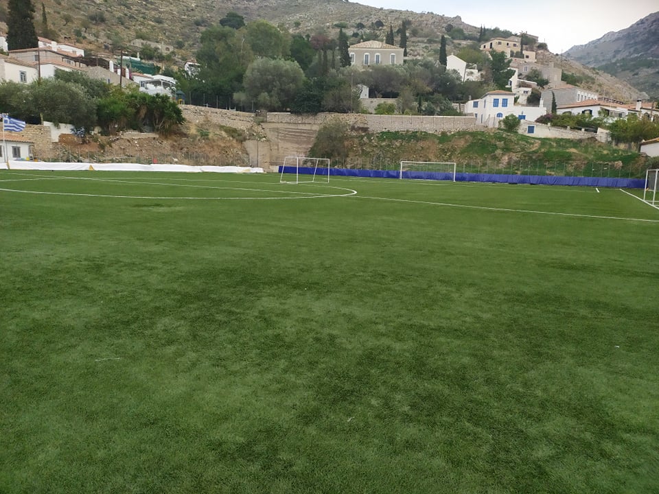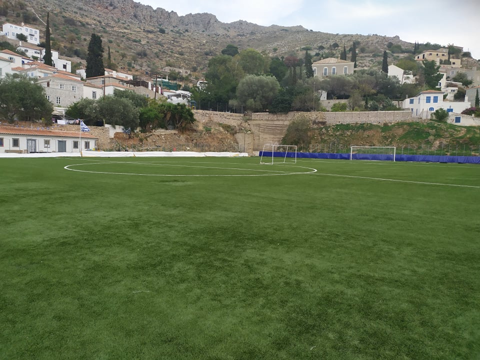 Ειδικά προστατευτικά στρώματα τοποθετήθηκαν γύρω από τον αγωνιστικό χώρο του γηπέδου της Ύδρας προκειμένου να πραγματοποιούνται οι εντός έδρας αγώνες με ασφάλεια.