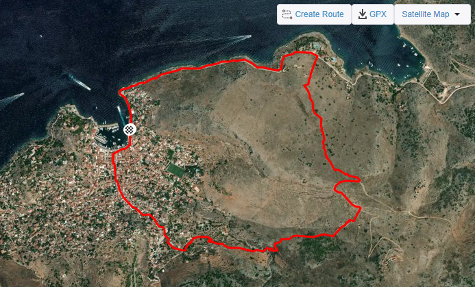 Διανύοντας σε πανέμορφο παραθαλάσσιο δρόμο με θέα το Αιγαίο 1500 μέτρα περίπου, η διαδρομή συνεχίζει δεξιά αλλάζοντας τερέν και μπαίνει σε ορεινό ανηφορικό μονοπάτι το οποίο χρησιμοποιείται για πρώτη φορά στο Hydra's Trail Event.