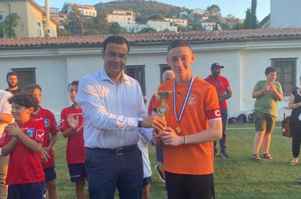 "Από την απονομή κυπέλλου μετά τη λήξη του φιλικού αγώνα μεταξύ των ποδοσφαιρικών ακαδημιών του Αθλητικού Ομίλου Ύδρας και του Τροιζηνιακού. Ο Δήμος Ύδρας κάλυψε το κόστος, μέσω της ΚΕΔΥ, αυτής της όμορφης διοργάνωσης που προήγαγε το αθλητικό ιδεώδες μεταξύ των νέων παιδιών. Ο Αθλητισμός προσφέρει Υγεία, Χαρά και προάγει την Ευγενή Άμιλλα. Οφείλονται συγχαρητήρια στο διοικητικό συμβούλιο της ΚΕΔΥ, στους προπονητές, στους Προέδρους των Αθλητικών Σωματείων, στους μικρούς μας φίλους και στους γονείς που συνέβαλαν στην επιτυχημένη αυτή διοργάνωση."