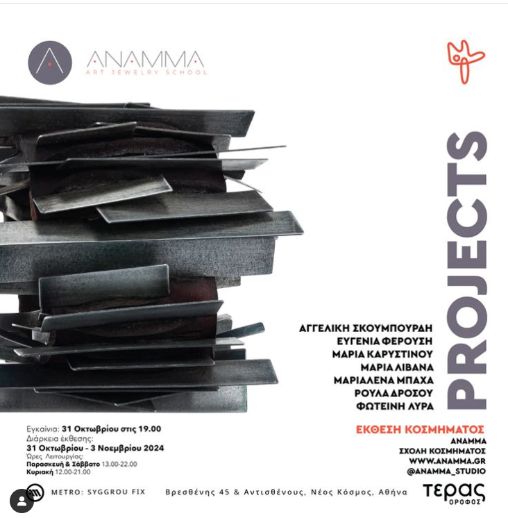 Στην ομαδική έκθεση με τίτλο PROJECTS της Σχολής Σύγχρονου Κοσμήματος ΑΝΑΜΜΑ συμμετέχει η Υδραία Ταλαντούχα Σχεδιάστρια Κοσμημάτων Μαριαλένα Μπαχά.
