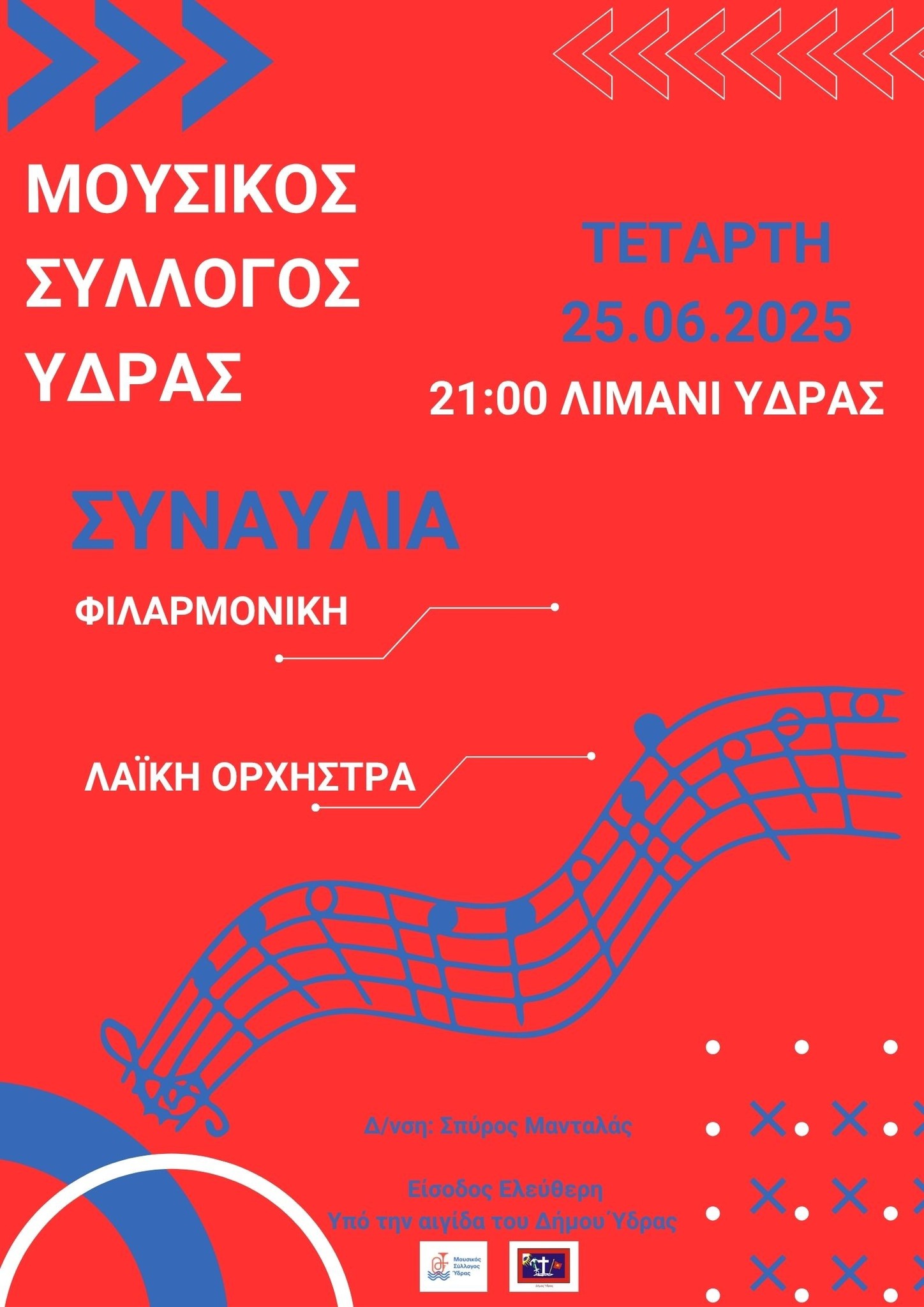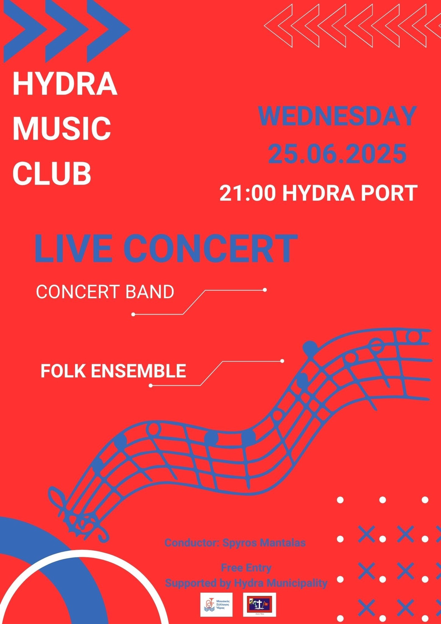Ο Μουσικός Σύλλογος Ύδρας προσκαλεί το κοινό σε μια μαγευτική συναυλία που θα πραγματοποιηθεί την Τετάρτη 25 Ιουνίου και ώρα 21:00, στο λιμάνι της Ύδρας.