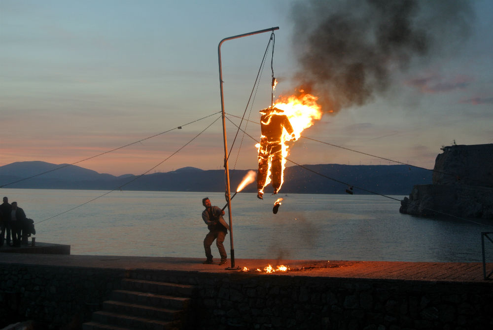 Εδώ οφείλουμε να τονίσουμε την πολύωρη προετοιμασία που χρειάστηκε για τη δημιουργία και την κατασκευή του Γιούδα από τον Κώστα Αργείτη και τον Κούλη Λαναρά, οι οποίοι κάθε χρόνο την επιμελούνται με ξέχωρη διάθεση και αφοσίωση.
