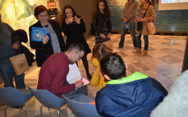 Ο Συγγραφέας το πρωί της ίδιας μέρας είχε επισκεφτεί τους μαθητές του Β' Δημοτικού Σχολείου, στο οποίο μαθήτευσε και ο ίδιος και τους μίλησε για το βιβλίο του.