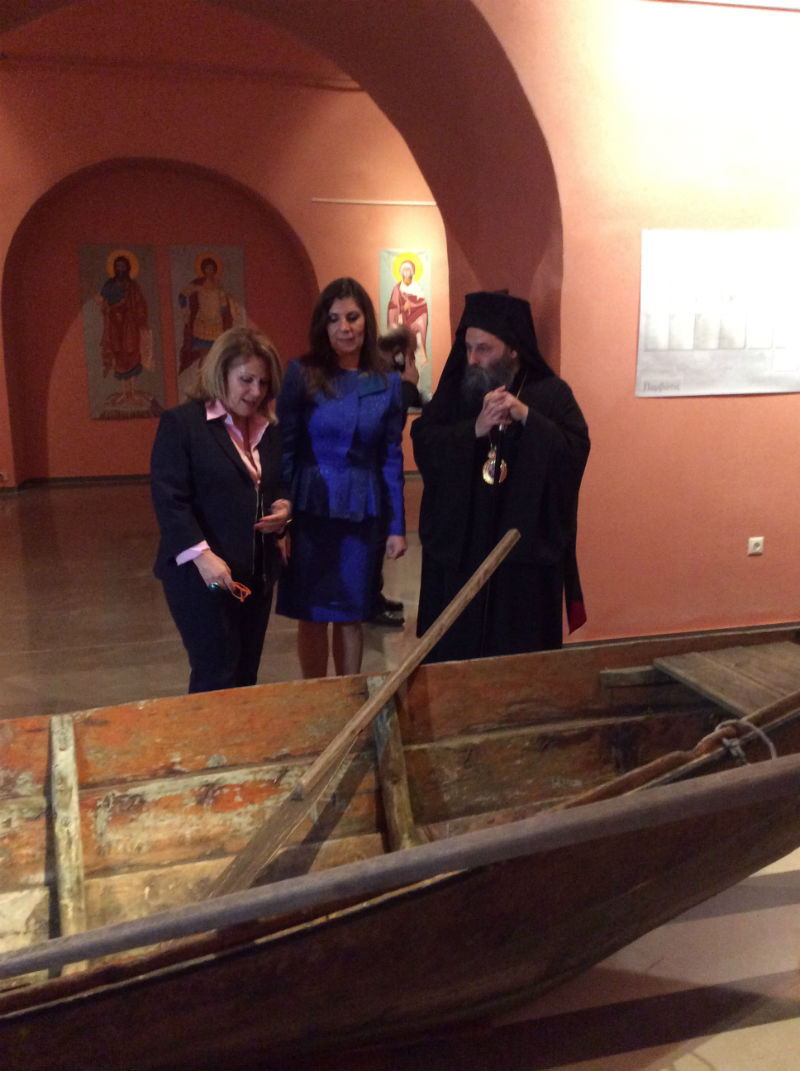 Αξιοσημείωτο και κεντρικό έκθεμα της έκθεσης "Παμβώτις" ήταν η παμπάλαια βάρκα της λίμνης, που εξετάζουν με πολύ ενδιαφέρον, όπως διακρίνονται στη φωτογραφία η Διευθύντρια του ΙΑΜΥ, η Διευθύντρια του Ιστορικού Αρχείου-Μουσείου Ηπείρου Μάρθα Παπαδοπούλου και ο Μητροπολίτης Μάξιμος.