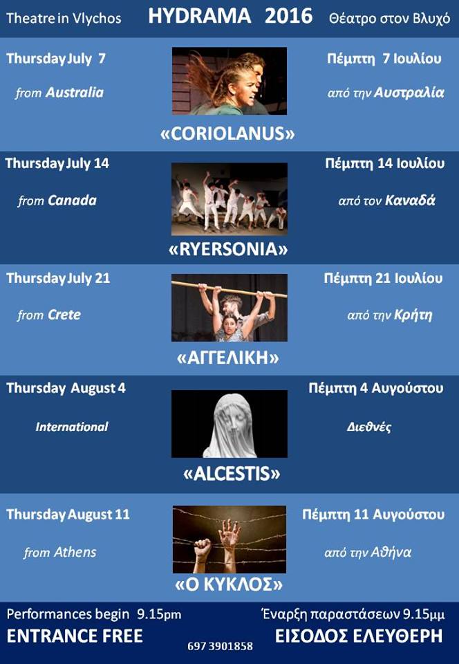 Από την Αυστραλία, τον Καναδά, την Κρήτη και όχι μόνο, προέρχονται οι θεατρικές και χορευτικές παραστάσεις που θα παρουσιαστούν αυτό το καλοκαίρι στο Θέατρο του Βλυχού, Hydrama Theatre.