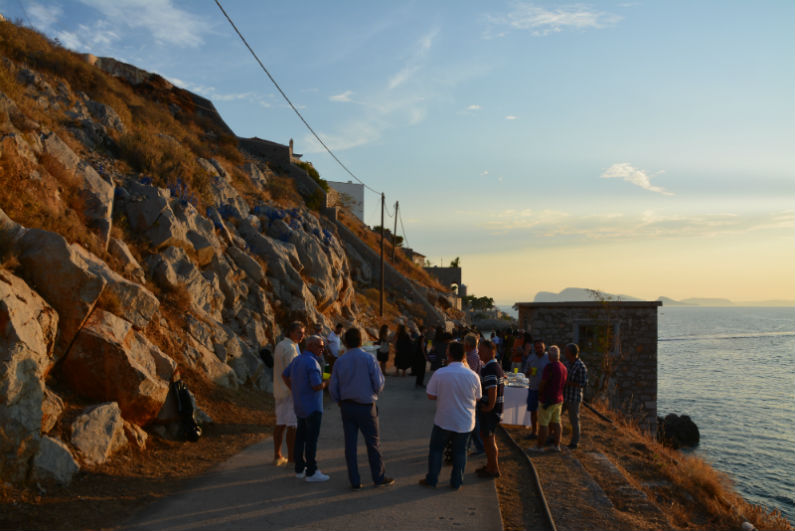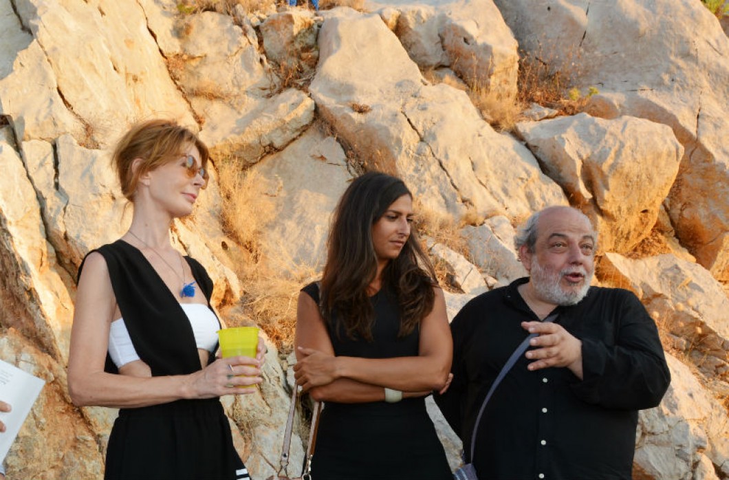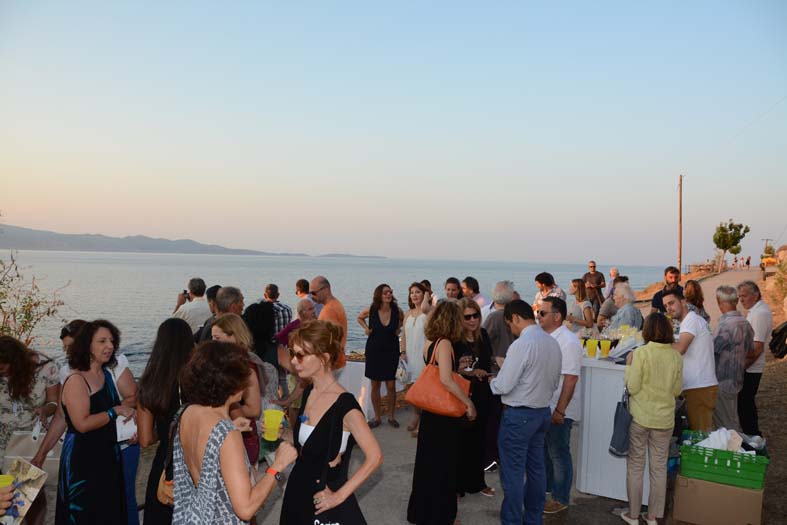 Η βραδιά έκλεισε ευχάριστα με τον ήλιο να δύει και τον κόσμο να απολαμβάνει από τη μια το μεταμορφωμένο μπλε τοπίο της Μαρίας Τσάγκαρη πάνω στα βράχια και από την άλλη το χρυσό του ήλιου πάνω στη θάλασσα της Ύδρας. Δυο τέχνες δηλαδή που συνταίριαξαν...