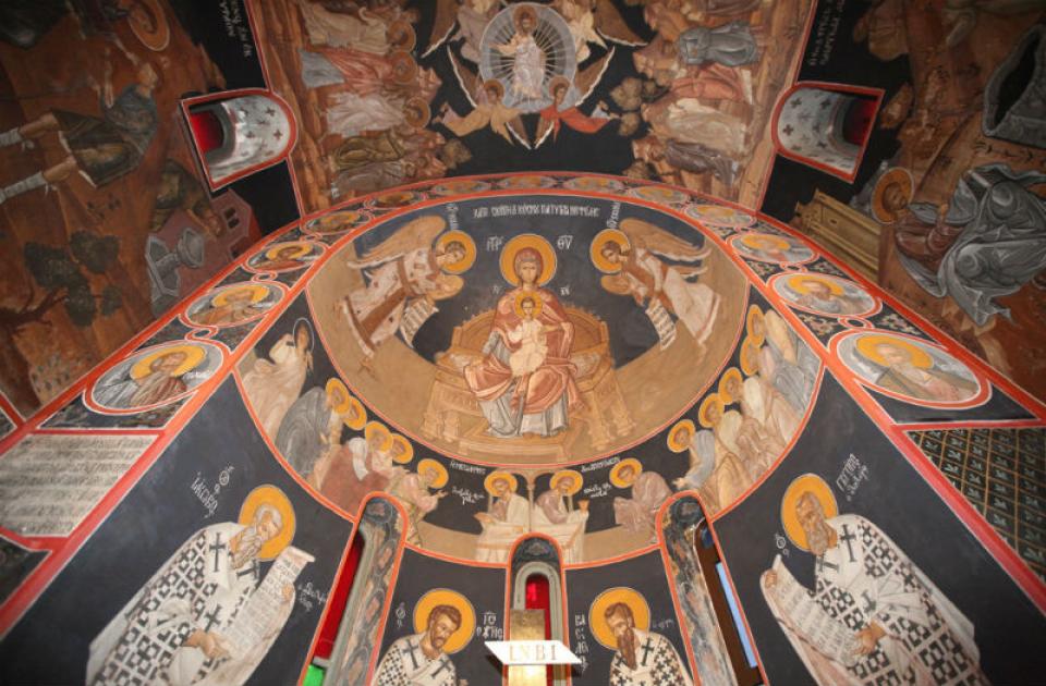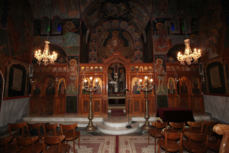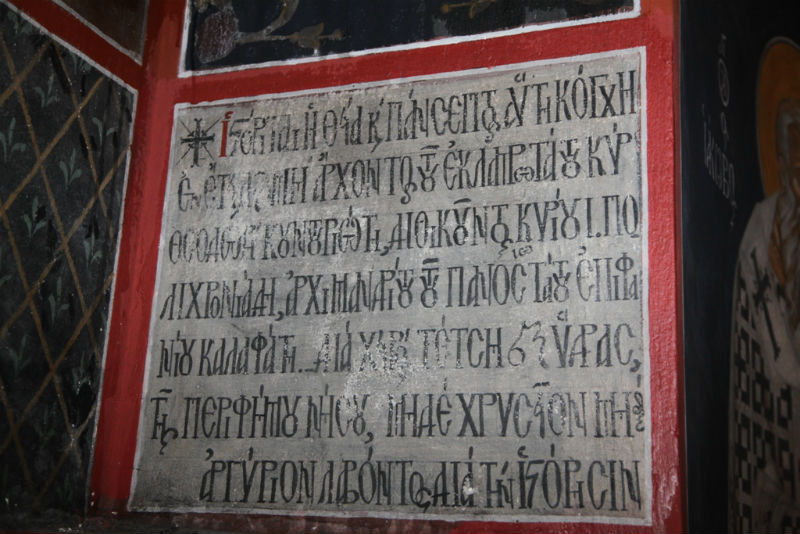 Αξίζει να σημειωθεί ότι στο αριστερό άκρο της αψίδας του Ναού υπάρχει η ακόλουθη επιγραφή: «Διά χειρός Τέτση εξ Υδρας της περιφήμου νήσου, μηδέ χρύσειον, μηδέ αργύριον λαβόντος διά την ιστόρησιν».