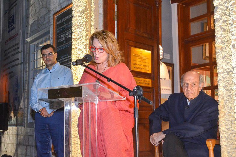Στην εκδήλωση, μεγάλο πολιτιστικό γεγονός για την Ύδρα, μίλησε για τον Αλέκο Φασιανό, που για 3η φορά παρουσιάζει έργα στο νησί, (2001, 2011, 2018), η Διευθύντρια του ΙΑΜΥ, Ντίνα Αδαμοπούλου η οποία έκανε μια σύντομη περιγραφή της έκθεσης, των έργων και του εξαιρετικού καλλιτέχνη. Τον ευχαρίστησε δε θερμά για την τιμή που κάνει στο μουσείο ο ίδιος, εκθέτοντας στον χώρο τους, επιδίδοντάς του, το μουσειακό αντίγραφο, τη ρωσική αυτοκρατορική βούλα.