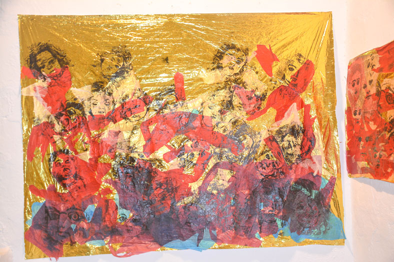 Χαρακτικά, ένθετα ακανόνιστα χαρτιά, τμήματα από εφημερίδες, κλωστές, σπαράγματα από φωτογραφίες, ζωγραφισμένες κούκλες αποτυπωμένες στον καμβά, που ποτέ δεν κράτησαν αυτά τα παιδιά, αγώνας και πόλεμος, όλα απεικονίζονται με πολύ δυνατό τρόπο στην έκθεση της Κρίστι Γρηγορίου.