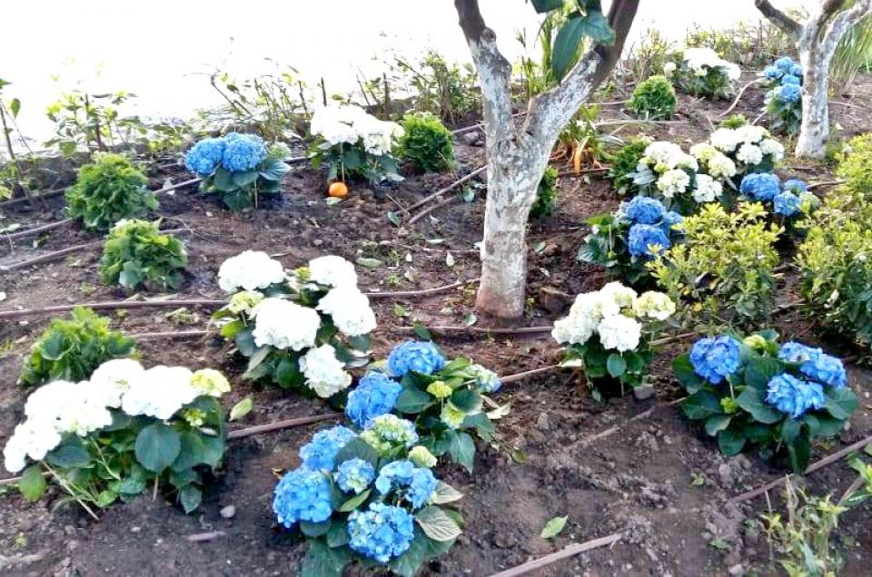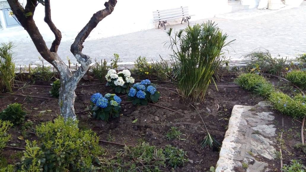 Πανέμορφες ορτανσίες, αρωματικά και ποικίλα ανθεκτικά φυτά, καλαίσθητα δενδρύλλια και ανθοφόροι θάμνοι ανανέωσαν τον κήπο, που από το 2017 ουσιαστικά φροντίζει με μεγάλο ενδιαφέρον ο αγαπητός κ. Βερούκας.