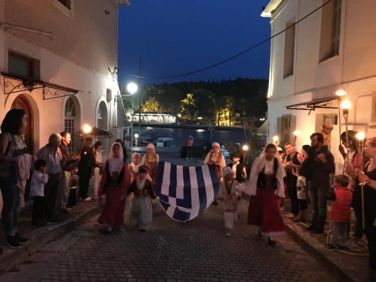 Η αρχή έγινε με τη λαμπαδηφορία απο την κεντρική πλατεία του Γαλαξιδίου παρουσία αρκετού κόσμου καταλήγοντας στο Ναυτικό Μουσείο, όπου έγινε ομιλία από τη Διευθύντρια του Ιστορικού Αρχείου-Μουσείου Ύδρας κ. Κωσταντίνα Αδαμοπούλου με θέμα: "Γαλαξίδι-Ύδρα 18ος-19ος αι. Αμφίδρομες Πορείες Ναυτοσύνης".