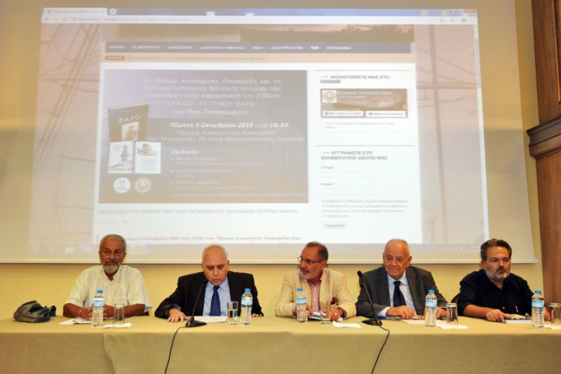 Την Πέμπτη 3 Οκτωβρίου 2019, το ΕΛΛΗΝΙΚΟ ΙΝΣΤΙΤΟΥΤΟ ΝΑΥΤΙΚΗΣ ΙΣΤΟΡΙΑΣ και το ΙΔΡΥΜΑ ΑΙΚΑΤΕΡΙΝΗΣ ΛΑΣΚΑΡΙΔΗ παρουσίασαν την γ’ έκδοση του βιβλίου «ΕΛΛΗΝΙΚΟΙ ΠΕΤΡΙΝΟΙ ΦΑΡΟΙ» του Γήση Παπαγεωργίου, στο φιλόξενο και πανέμορφο χώρο του Ιδρύματος στον Πειραιά.
