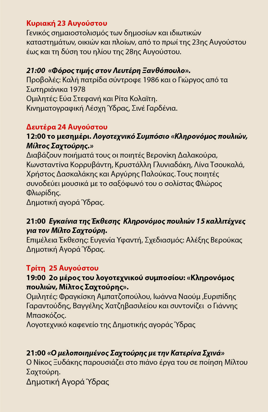 Η αφίσα του εορτασμού και κάτω αναλυτικά το πρόγραμμα: