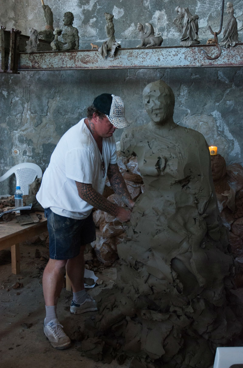 Συγκεκριμένα, με ανοιχτή πρόσκληση του καλλιτέχνη, καλούνται όλα τα παιδιά από τα δύο σχολειά του νησιού, ενήλικες Υδραίοι αλλά και οι παραθεριστές και επισκέπτες του νησιού και της διοργάνωσης, να δημιουργήσουν αντικείμενα από πολύχρωμο πηλό. Το σύνολο των αντικειμένων, τα αποτελέσματα διαφορετικών εμπνεύσεων, δεξιοτήτων, προθέσεων και διαδικασιών θα συγκροτήσουν ένα έργο-ίχνος, το σώμα μιας συλλογικής, ανοιχτής επιτέλεσης το οποίο θα εγκατασταθεί θραυσματικά, στο εσωτερικό αλλά και στον περιβάλλοντα χώρο του παλαιού Σφαγείου. Ανώνυμο σύνολο πολλών επώνυμων δημιουργών το έργο θα αποτελέσει έτσι ένα είδος "συμφωνίας σε πηλό", ένα παιχνίδι για όλες τις ηλικίες και ταυτόχρονα την υλοποίηση ενός συλλογικού βλέμματος πάνω στο νησί και τις ιστορίες του, με την περιέργεια και το ενδιαφέρον του καλλιτέχνη να κινούν τα επιμέρους μέρη της όλης διαδικασίας.
