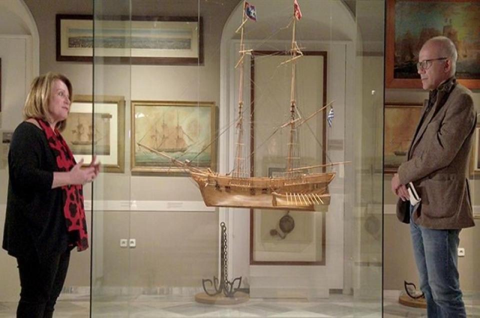 Η ιστορικός και Διευθύντρια του Ι. Α. Μ. Υ. Ντίνα Αδαμοπούλου συζητά με τον Τάσο Τέλλογλου και παρουσιάζει πτυχές του Αγώνα, μέσα από το Ιστορικό Αρχείο – Μουσείο Ύδρας αλλά και από το Κάστρο του Κάβου, όπου και ο Ανδριάντας του Ναυάρχου Ανδρέα Μιαούλη.