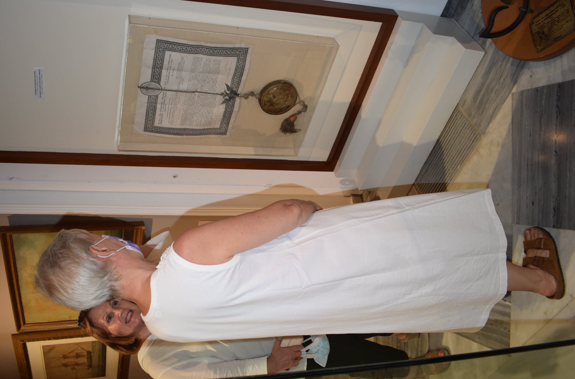 Η Διευθύντρια του Ι.Α.Μ.Υ. Ντίνα Αδαμοπούλου υποδέχθηκε την Πρέσβη και την ξενάγησε στους χώρους του Μουσείου, τους οποίους η επισκέπτρια θαύμασε.